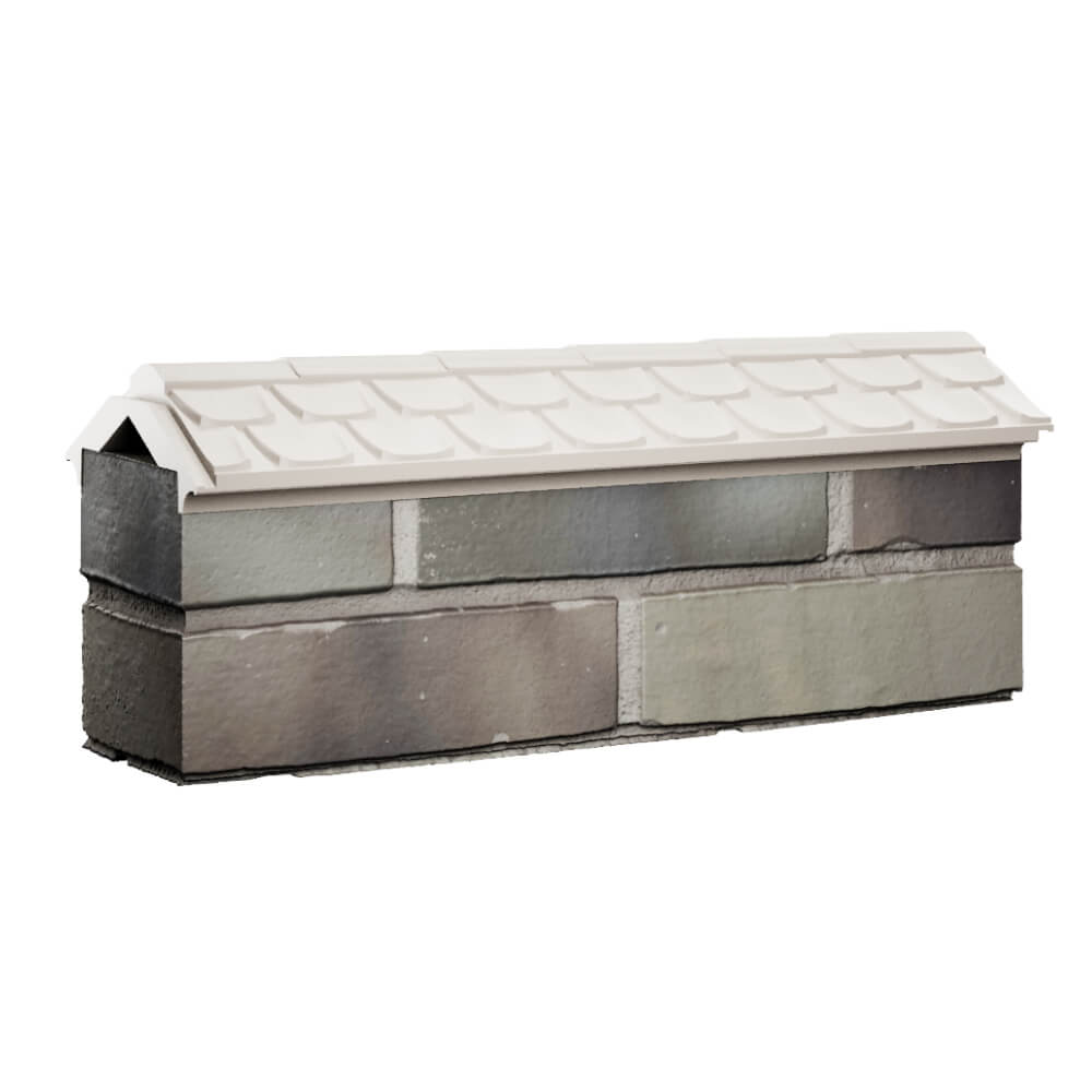 Парапет Elbrus Бежевый 175 х 510 х 65 мм с посадкой на 0.5 кирпича (130 мм) под натуральную черепицу может быть применен как в цокольной, так и в верхней части забора в виде конька.