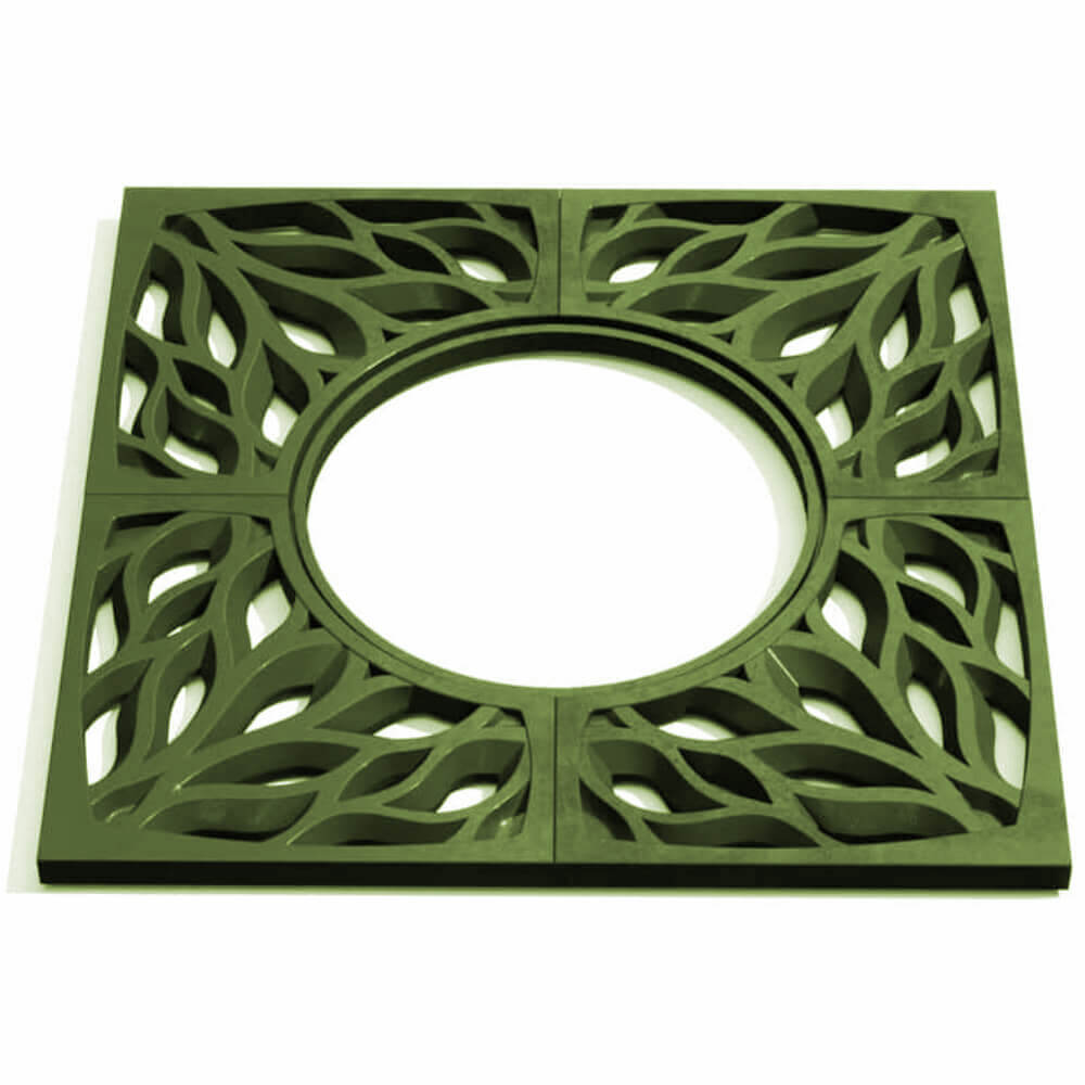 Прикорневая решётка Crust Зеленая для городского благоустройства. Состоит из 4-х отдельных элементов в форме кроны дерева. Скрытая стыковка секций является особенностью данной модели и создаёт целостный вид. Решетка укладывается на почву вокруг деревьев, чтобы обеспечить благоприятные условия для их произрастания. Использование приствольных решёток является важным моментом при благоустройстве городских улиц, парков и скверов. Они способствуют сохранению естественной рыхлости почвы, защите корневой системы растений и свободному проникновению влаги, воздуха и солнечных лучей.